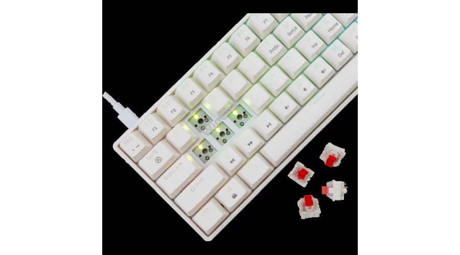 A White Shark GK-004213V2-W/R-HU egy fehér színű, magyar kiosztású mechanikus gamer billentyűzet, mely piros mechanikus kapcsolókkal van felszerelve. A billentyűzet RGB háttérvilágítással rendelkezik, Type-C csatlakozással könnyen csatlakoztatható, és strapabíró, minőségi anyagokból készült. Ideális választás játékosoknak, akik precíz, megbízható és látványos megjelenésű billentyűzetet keresnek a gaminglehetőségekhez, ráadásul magyar kiosztású, így kényelmes használatot biztosít a hazai felhasználóknak is