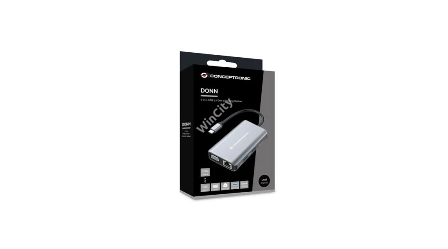 DONN21G 7-in-1 USB 3.2 Gen 1 Docking Station, HDMI, VGA, GbE LAN, USB-A 3.0 x 3, 100W USB PD