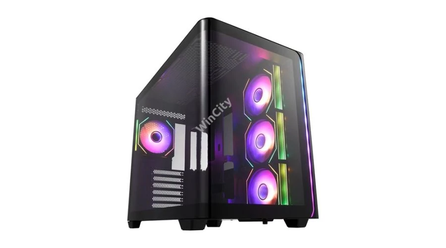 Az FSP M580 egy igazán látványos és praktikus gamer gépház, ami lekerekített formáival és 270°-os panoráma üvegoldalával nemcsak dizájnban emelkedik ki, hanem a lehetőségeid előtt is teljesen új távlatokat nyit. Három oldalra szerelt, fordított ARGB ventilátor és egy hátsó PWM ARGB ventilátor gondoskodik a lenyűgöző világítási effektekről és a hatékony hűtésről, miközben a ház ATX, M-ATX vagy Mini-ITX alaplapokat, akár 445 mm-es videokártyát és 360 mm-es radiátort is befogad. Bőséges tárhelyet kapsz három SSD-vel és két HDD-vel, a Type-C és dupla USB3.0 port pedig gyors csatlakozást biztosít, így a dizájn és a funkcionalitás tökéletesen találkozik ebben a prémium gépházban.