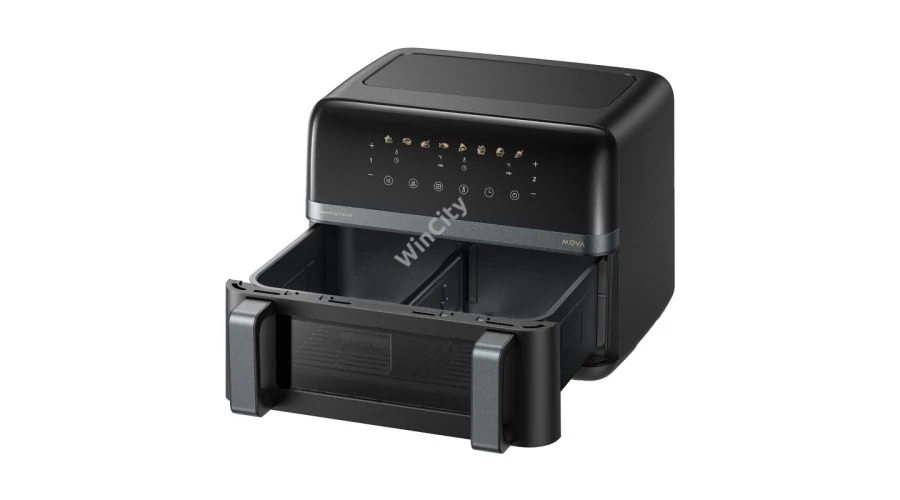 A MOVA FD20 Pro Air Fryer (légsütő) lehetővé teszi, hogy finom és egészséges ételeket készítsen túl sok zsír nélkül. A nagy, 9 literes FlexZone™ kosár lehetővé teszi, hogy egyszerre 2 különböző ételt vagy egy nagy adagot főzzön az egész családnak. A 2700 wattos teljesítménynek és a 360°-os Hot Poly-Air™ technológiának köszönhetően a készülék gyorsan felmelegszik, és egyenletesen osztja el a forró levegőt, hogy az ételek zsír nélkül ropogósak legyenek. A SyncFinish™ funkció biztosítja, hogy két független étel egyszerre készüljön el, a beépített programok és a DIY üzemmód pedig megkönnyíti a készülék használatát a kezdők és a tapasztaltabb felhasználók számára egyaránt.