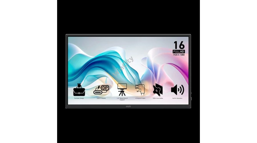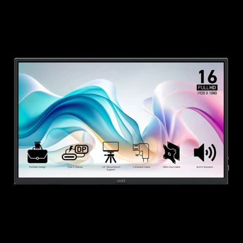 MSI Monitor Business PRO MP165 E6, 15,6" FHD 1920x1080, IPS, 250 cd/m2, 16:9, 60 Hz, 4ms, 2x USB-C, miniHDMI, Black