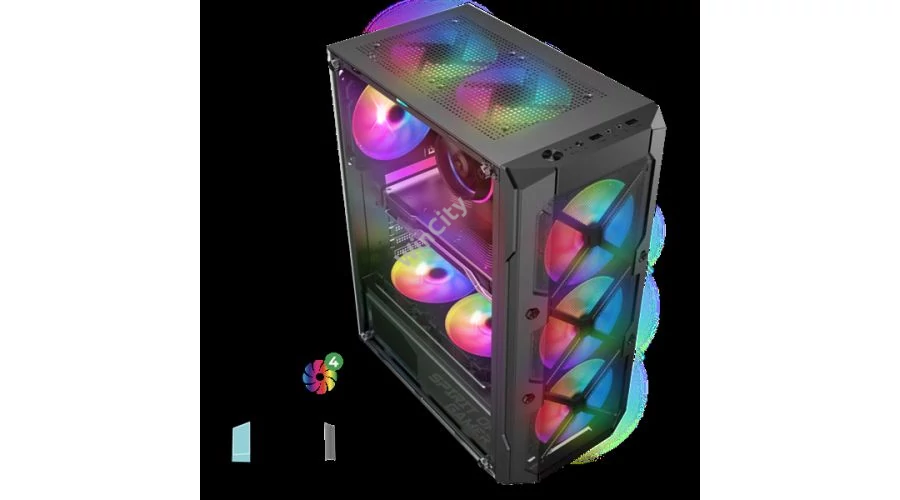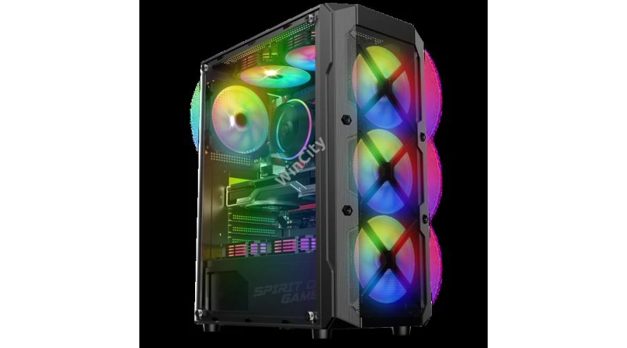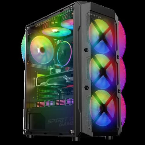 Spirit of Gamer Számítógépház - REBEL XT Black (fekete, ablakos, 4x12cm ventilátor, alsó táp, ATX, 1xUSB3.0, 2xUSB2.0)