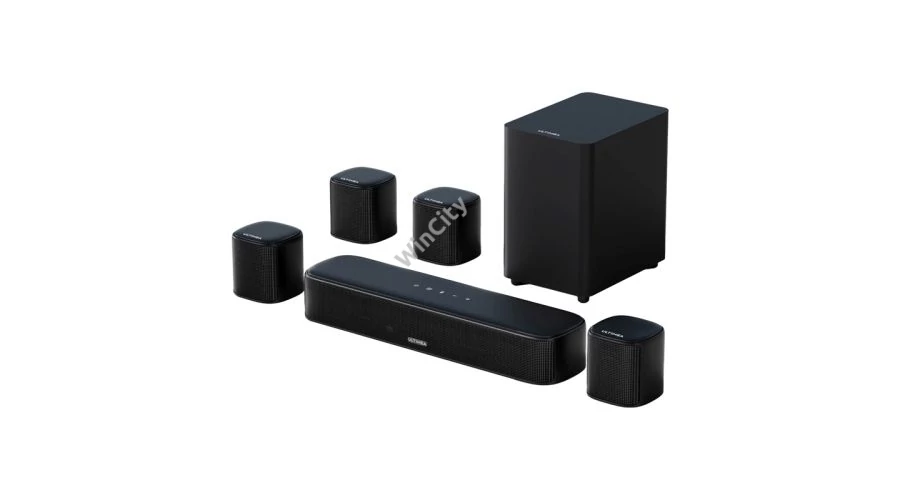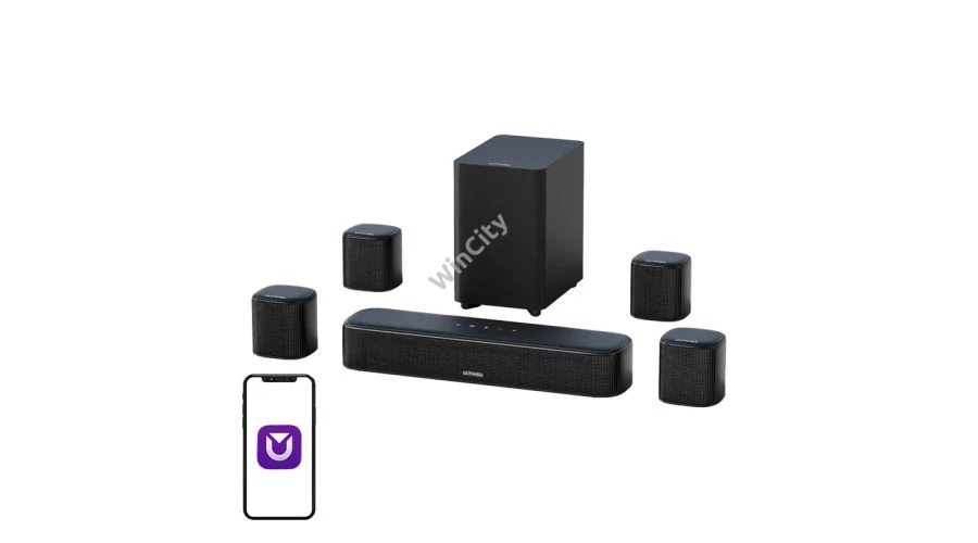 Az Ultimea BassMX és Ultimea SurroundX technológiák felelősek a tiszta basszus és a pontos surround hangvisszaadásért. A négy hüvelykes vezetékes mélynyomó mély, alacsony hangokat ad, amelyek hangsúlyozzák az akciót és valósághűvé teszik minden jelenetet. Az egész rendszer kiváló minőségű hangvisszaadást biztosít, megőrizve a párbeszédek tisztaságát és az effektek részleteit.